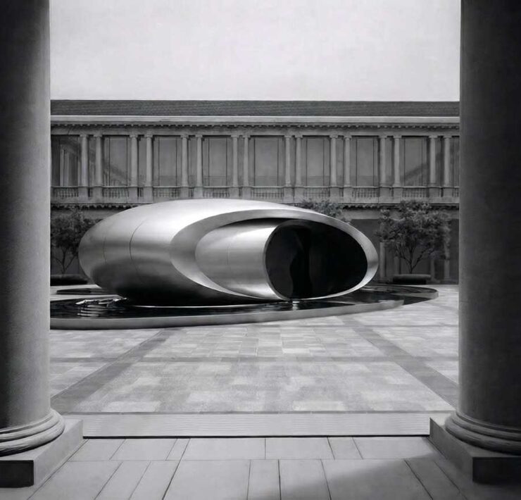 La facciata in vetro curvato esalta questa connessione senza soluzione di continuità tra gli interni dell’edificio, i giardini e la città circostante.