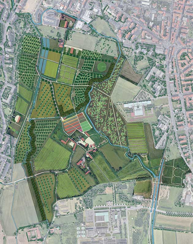 Boschi e prati ai margini sud-occidentali della città, in continuità con i parchi esistenti, nella Porta Verde 2030 del team guidato da Carlo Venegoni