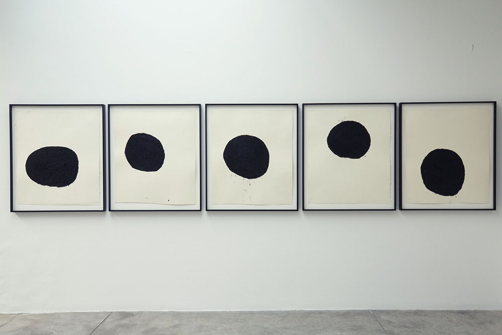 Per i suoi disegni l’artista utilizza, sin dal 1971, uno stick di vernice nera (pittura a olio compressa, cera e pigmento) lavorando in modo intuitivo: anche se queste opere sono parte integrante di quello studio dei temi chiave di tempo, materialità e processo, caratteristici della sua pratica scultorea, non vanno considerate schizzi o studi per le sculture ma opere a sé stanti, ognuna con un carattere e un’energia singolari, resistenti a qualsiasi associazione metaforica o emotiva.