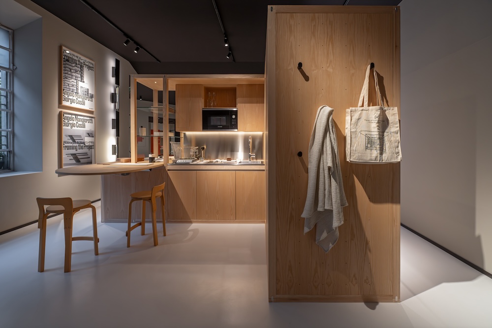 Il sistema 6×6 concepito da Nicholas Bewick e sviluppato da Cesare Roversi propone un approccio modulare alla definizione di microarchitetture interne basato su telai in legno naturale con sezione 6×6 cm, configurabili con pannellature, accessori e finiture differenti. La logica è quella di un framework aperto che consente di realizzare sia elementi freestanding indipendenti dall’involucro sia sistemi continui che lavorano come una seconda pelle tecnica e funzionale dello spazio esistente.
