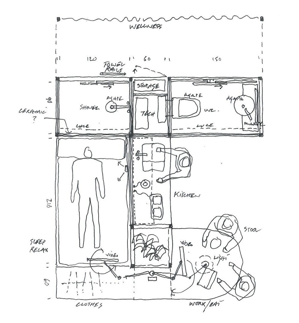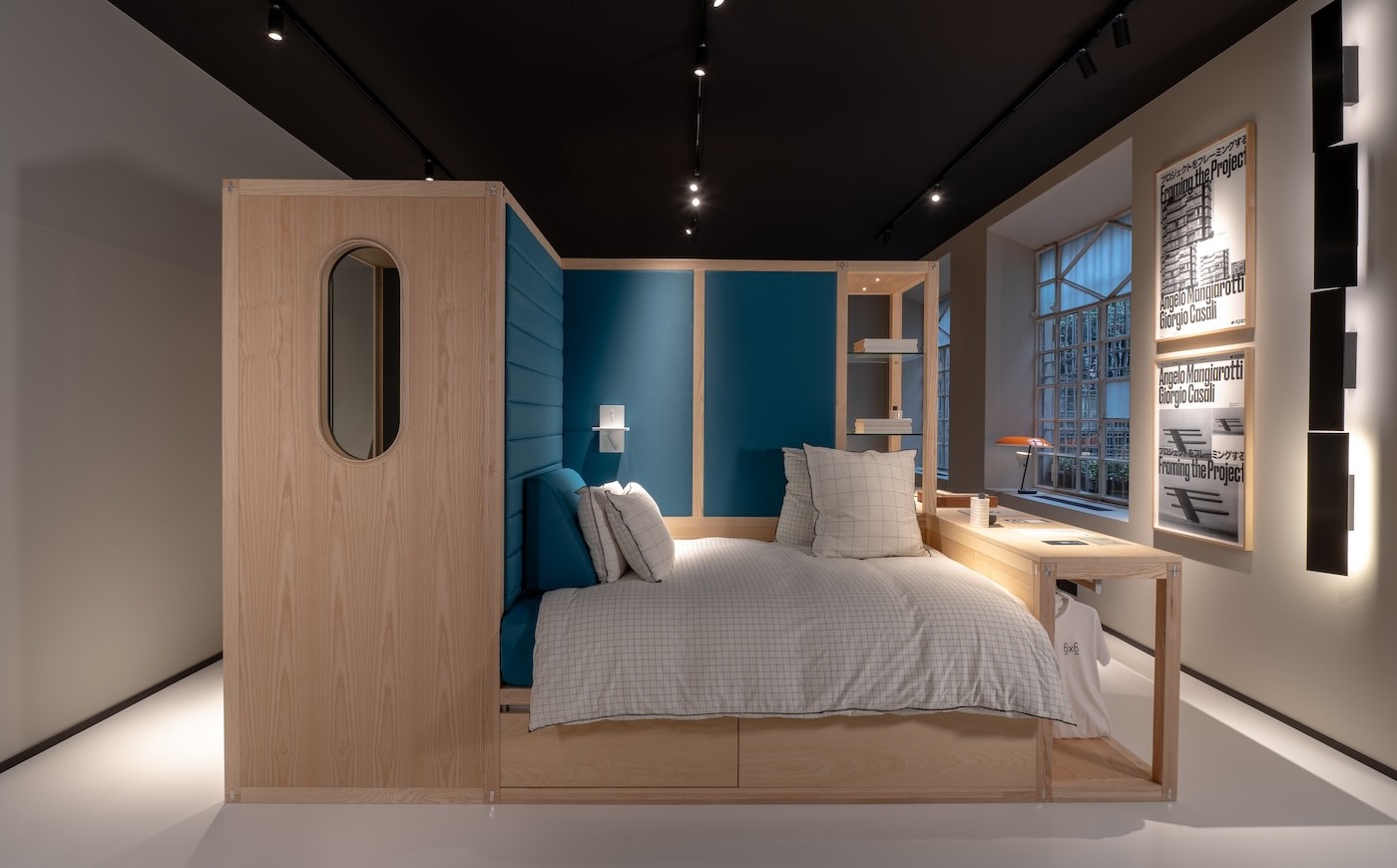 Una delle applicazioni del sistema è Microliving, configurazione freestanding firmata da Nicholas Bewick che concentra le funzioni abitative attorno a un nucleo centrale, generando uno spazio circolare inseribile in ambienti esistenti o utilizzabile come matrice per nuovi paesaggi domestici. Il progetto interpreta la flessibilità del 6×6 come dispositivo capace di rispondere all’evoluzione continua delle abitudini dell’abitare, con un’unità abitativa personalizzabile e reversibile.