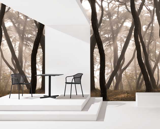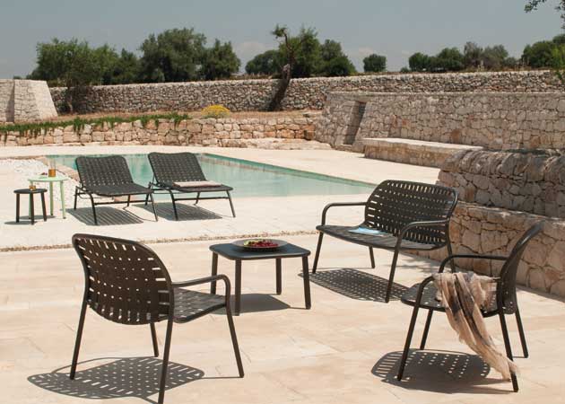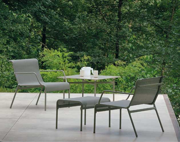 | Poltroncine, lettini e tavolo della collezione Yard. Progetto Stefan Diez per Emu |
