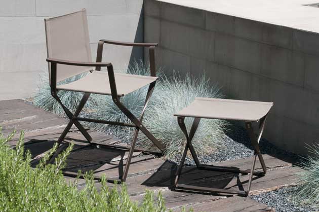 Minimalista ma allo stesso tempo ricercata, Ciak è la regista pieghevole di Stefan Diez, realizzata con una struttura a spirale in alluminio estruso e componenti in inox, abbinata a un tessuto tecnico da esterno e a braccioli in faggio verniciato. Ricerca formale, attenzione al dettaglio e giusta combinazione di materiali tecnologici le principali caratteristiche di Ciak, che danno vita a un prodotto solido e senza tempo, adatto a diversi ambienti. Abbinato alla seduta un originale poggiapiedi. Seduta e poggiapiedi sono disponibili in quattro varianti colore: bianco opaco, nero, grigio e marrone d’India.