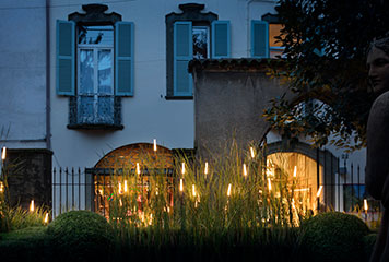 Nell’installazione progettata da Guido Parenzan e Maurizio Quargnale i sottili steli dalla punta luminosa Syphasera fioriscono tra la fitta vegetazione del giardino, in un notevole esempio di equilibrio e interazione tra elementi naturali e artificiali.