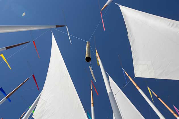 Nato da un’ispirazione di Renzo Piano, il progetto consiste in un “campo” di 57 alberi in legno di cedro rosso e acciaio bianco alti 12 metri, strallati tra loro con sartie in tessile su cui sono inseriti dei fiocchi in Dacron. Sulla sommità degli alberi sono installati dei segnavento cuciti con tessuti di spinnaker colorati che segnalano direzione e intensità del vento. Tra alcuni alberi sono ricavate delle altalene doppie da utilizzare in coppia, all’ombra delle vele e con vista mare.