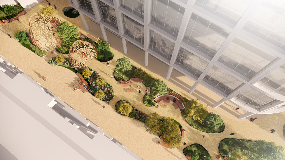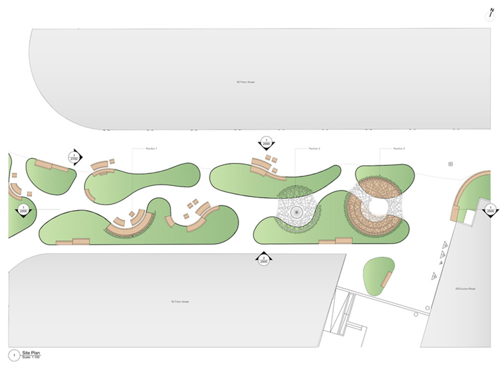 Il risultato è il paesaggio realizzato da Townshend Landscape Architects, con tre nuovi padiglioni, spazi semicoperti pensati per sedersi e rilassarsi tra una riunione e l’altra o dopo il lavoro, per spettacoli teatrali e musicali all’aperto e per chi attraversa Regent’s Place dalla frenetica Euston Road.
