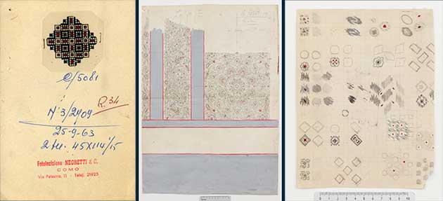Disegni per stampe di Antonio Ratti, tecniche miste (foto MuST, Fondazione Antonio Ratti, Como)