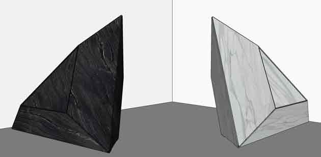 La sequenza ieratica di quattro muri pensati da Alper Derinbogaz insieme a Garfagnana Innovazione si confronta con la materia primaria immaginata da Eduardo Castillo per Elite Stone.