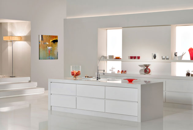| La pietra agglomerata è stata utilizzata per i piani della cucina |