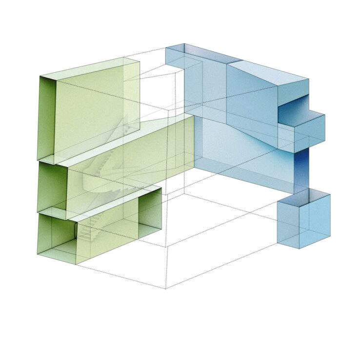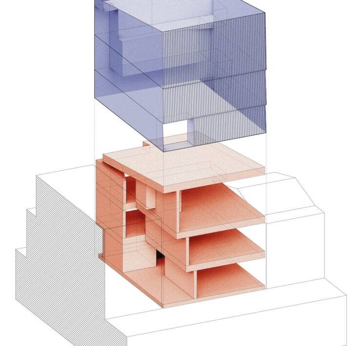 Il progetto parte dalle condizioni dell’edificio esistente: un volume modesto, addossato su due lati ad altri fabbricati, privo di affacci aperti e lontano da qualsiasi risorsa naturale. La risposta progettuale non si limita a rinnovarne l’estetica, ma ne riscrive la struttura funzionale e simbolica a partire da un principio: trasformare un vincolo in opportunità.