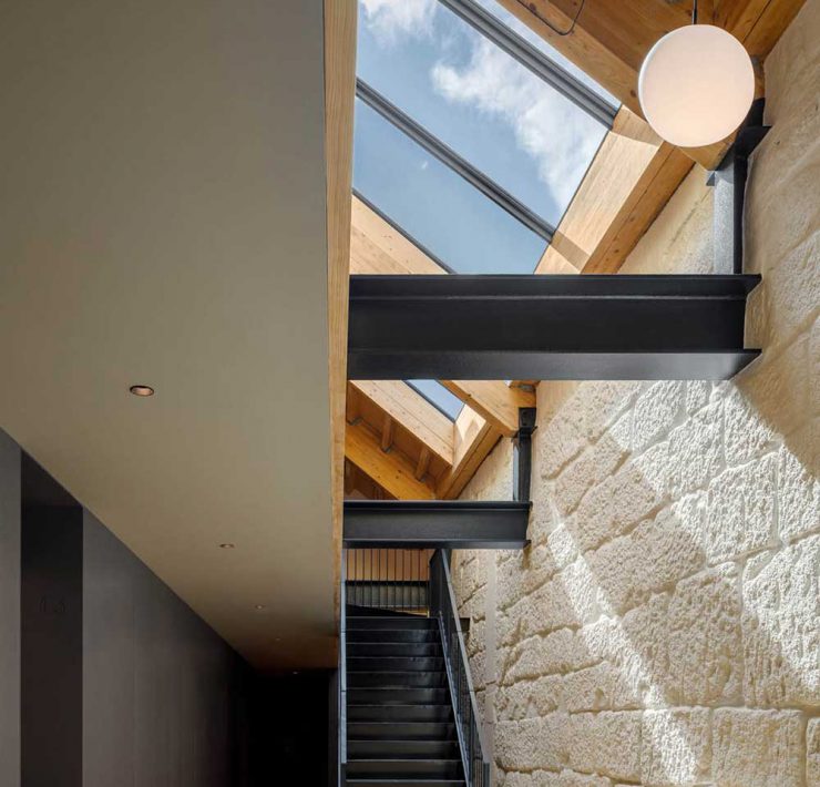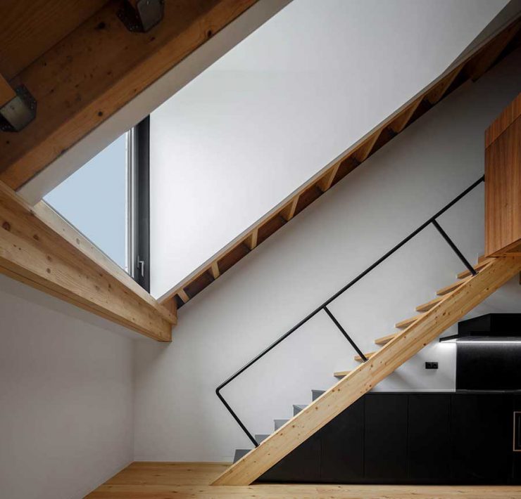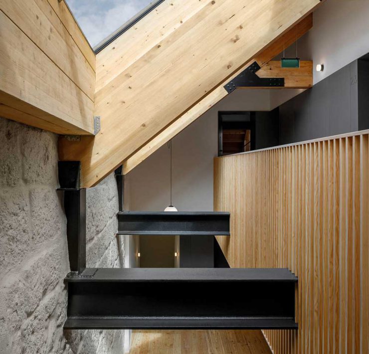 Lo studio, fondato nel 2013 a Porto guidato dagli architetti Pedro Ribeiro da Silva e Pedro Barata, ha modulato gli interni con grandi lucernari in vetro che lasciano entrare la luce naturale. Sono stati ricavati dodici appartamenti distribuiti su due piani principali, più un ultimo livello con una superficie più piccola dove si trova un soppalco.
