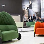 Tra le altre novità presentate da Lapalma a Orgatec lo sgabello Lem (design Shin e Tomoko Azumi), presentato in una versione monocolore arancio.