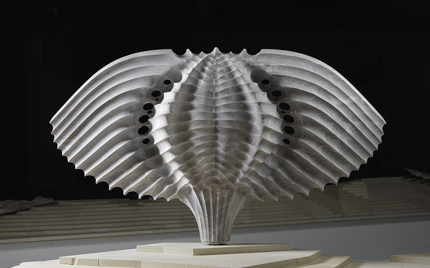 La ricerca di Galiotto si concentra da anni sul rapporto tra natura e tecnologia, arte e ingegneria. Ogni scultura nasce infatti da un processo progettuale che prevede la messa a punto di strumenti e macchine a controllo numerico capaci di incidere la pietra fino a ottenere spessori minimi, modificandone la percezione di luce e colore. «Ciò che mi affascina – ha affermato l’artista e designer – è la ricerca di forme ambigue, a cavallo tra regno animale e vegetale, che alludono alla polpa del corpo e alle sembianze da essa sottese».