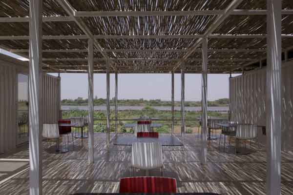 da 20 piedi adibiti a residenza e 7 container da 40 piedi adibiti a caffetteria
