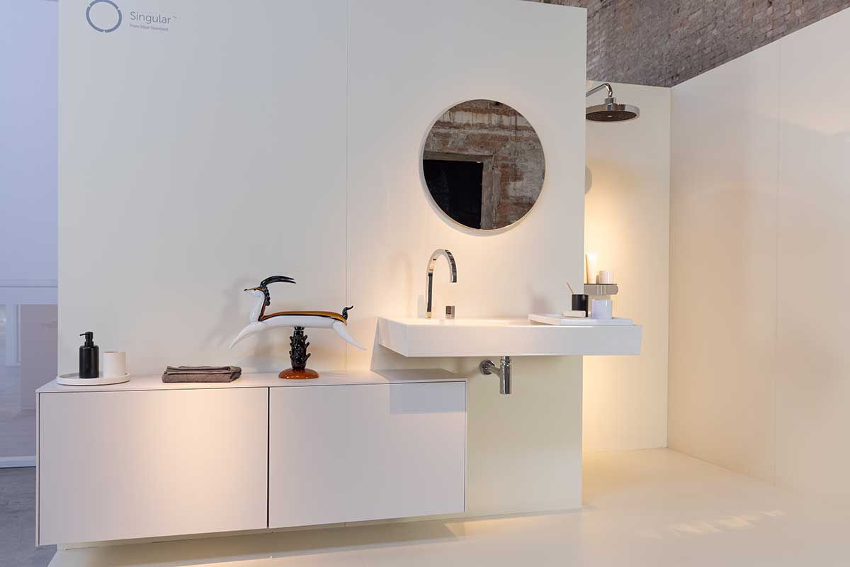 L’installazione site-specific Aesth|ethics, realizzata dal chief design officer di Ideal Standard Roberto Palomba, traduceva negli spazi dell’Arsenale l’approccio alla progettazione Singular di Ideal Standard, che esplora le molteplici possibilità e alternative cross-category per l’ambiente bagno del brand, sottolineando come le varie collezioni possano abbinarsi insieme in modo armonico sia da un punto di vista estetico che funzionale.
