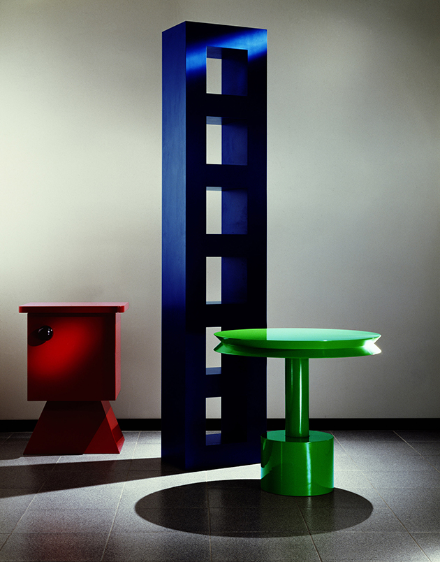 Andy, Sandy e Louis, scaffale, tavolino e armadietto, Memphis Milano