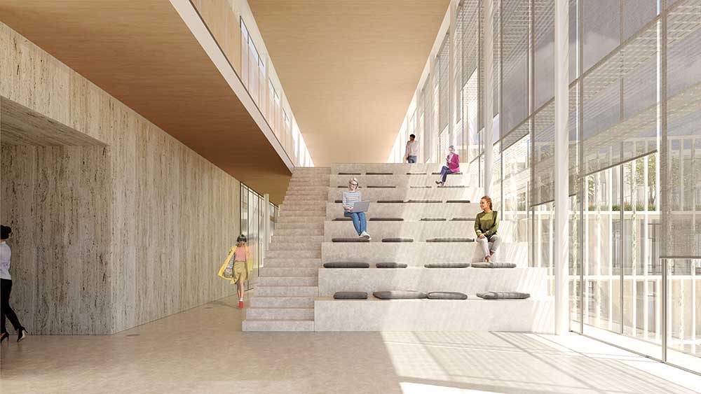 Ampi spazi aperti e aree esterne più raccolte conferiscono al complesso una dimensione quasi domestica, definendo un progetto a misura d’uomo. A sua volta il programma funzionale dà vita a un ambiente innovativo e tecnologico, ma allo stesso tempo informale e accogliente.