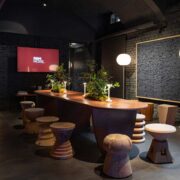 Un ponte tra la funzionalità di una sala da tè e la creatività di un interno bohémien. Lo spazio è arredato con pezzi iconici di artigiani, designer e artisti di tutto il mondo.