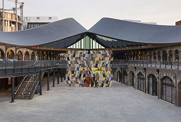 L’installazione è stata concepita da Gamper come una giocosa porta di accesso temporanea al nuovo polo commerciale Coal Drops Yard.