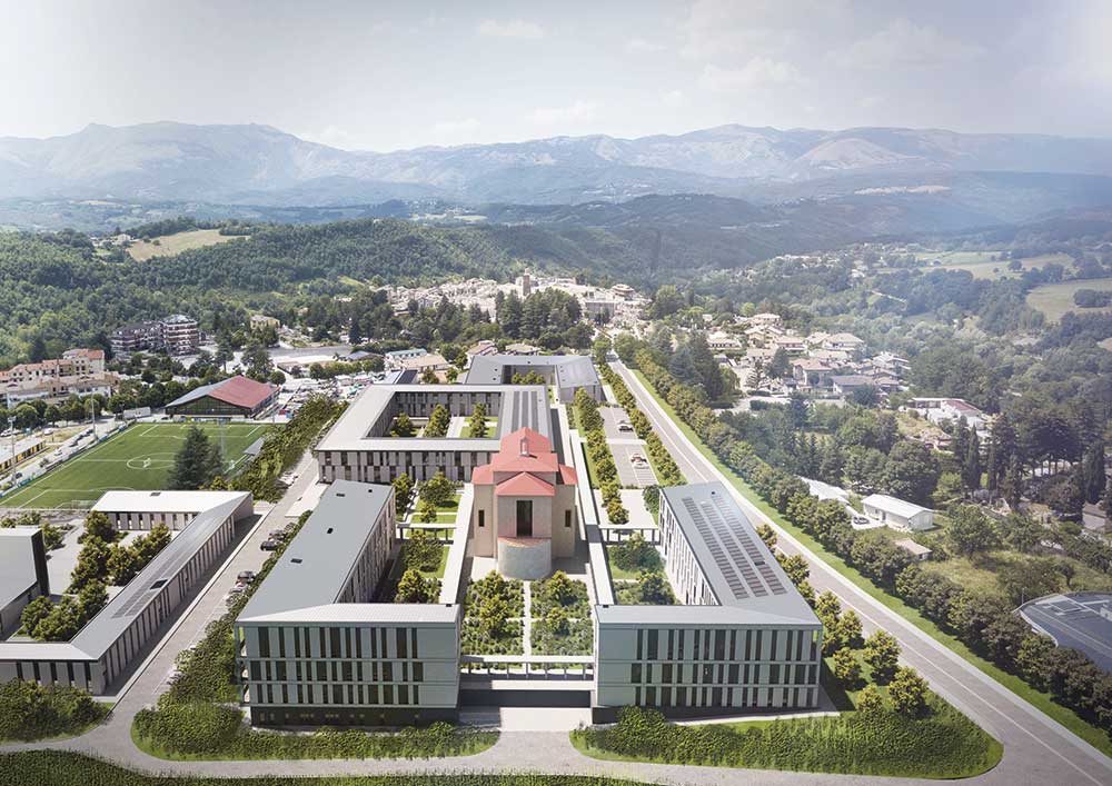 Sull’area del complesso ‘Don Minozzi’, progettato da Arnaldo Foschini negli anni Venti del Novecento per accogliere gli orfani di guerra, il progetto di Stefano Boeri Architetti recupera e amplia l’architettura preesistente rafforzando con ambienti di studio e aggregazione l’idea originaria di creare un luogo di culto e di comunità, oltre che di ospitalità.
