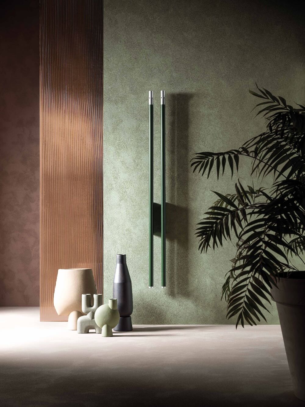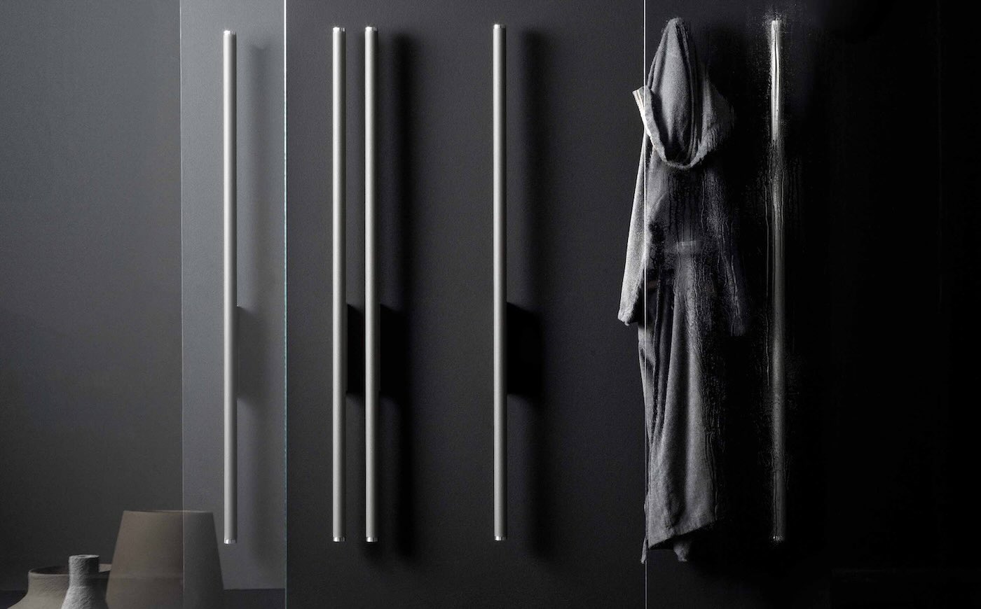A completare la collezione, Tina (in apertura): un modello complementare privo del dettaglio ‘scarpiano’, ma con le stesse prestazioni tecniche, impreziosito da terminali cilindrici in acciaio inox. Entrambi gli elementi si prestano all’installazione in ambienti bagno, spa, piscina, ma anche in contesti living e notte, grazie a un’estetica essenziale e trasversale.