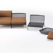 Il grande Living Table Aquarel, realizzato in Travertino Classico Romano a poro aperto e sabbiato, si presenta con un ampio piano monolitico rettangolare e una base composta da quattro elementi geometrici in Travertino perforati da delicati cilindri in Onice Rosa. Il tavolo circolare Pierce invece si caratterizza per il piano circolare in vetro extrachiaro che appoggia su una base monolitica di Travertino perforato anch’esso da un cilindro in Onice Verde menta.