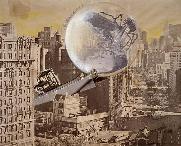 | Klaus Pinter, The Cocoon, 1971, fotomontaggio ritoccato con matite colorate, 51,5 × 63,5 cm [dettaglio] © Centre Pompidou Photo © G. Meguerditchian / DIST. RMN-GP |