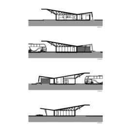 Su un terreno di circa 11.500 mq, l’infrastruttura comprende un vasto parcheggio e un edificio di supporto, di circa 500 metri quadrati, perpendicolare alla strada. Questa soluzione, oltre a una migliore integrazione nella topografia esistente, separa nettamente l’accesso al parcheggio delle auto dai percorsi degli autobus.