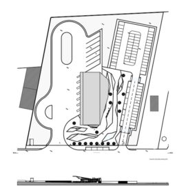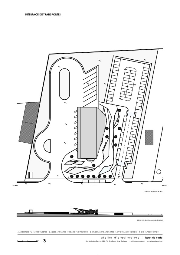 Su un terreno di circa 11.500 mq, l’infrastruttura comprende un vasto parcheggio e un edificio di supporto, di circa 500 metri quadrati, perpendicolare alla strada. Questa soluzione, oltre a una migliore integrazione nella topografia esistente, separa nettamente l’accesso al parcheggio delle auto dai percorsi degli autobus.