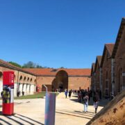 L’area intorno alla stazione, il cui disegno rimanda alla sagoma dell’edificio, è in parte asfaltata e in parte a verde, e comprende anche un parcheggio di biciclette.
