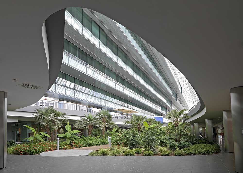 Il progetto del grande edificio pubblico – sviluppa una superficie utile complessiva di oltre 97.000 metri quadrati – si basa sul concetto del ‘verde sopra il grigio’, con l’intento di conservare l’intera area del parco verde su cui sorge.