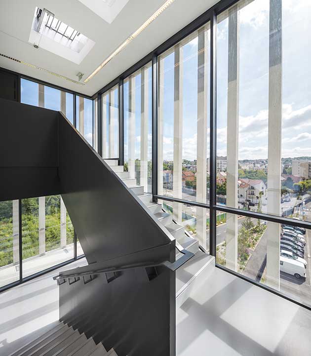 Le forme espressive dell’edificio prendono dunque origine dalla ricerca di una sostenibilità a tutti i livelli e da un dialogo costante con il territorio e con il più ampio programma di riconversione dell’area di Champigny-sur-Marne.