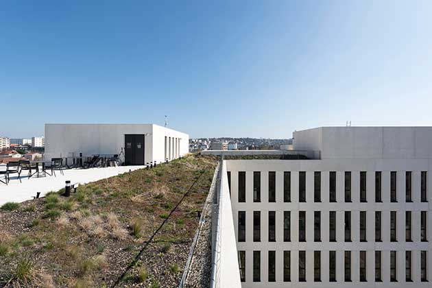 Qualità incrementata anche dalla terrazza creata in copertura, con tavoli, sedute, sdraio ed elementi per la schermatura solare, che contribuisce a definire un luogo piacevole.