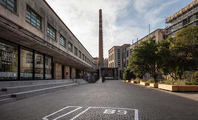 L´edificio B9 e il cortile della ciminiera (foto © Niccolò Vonci)