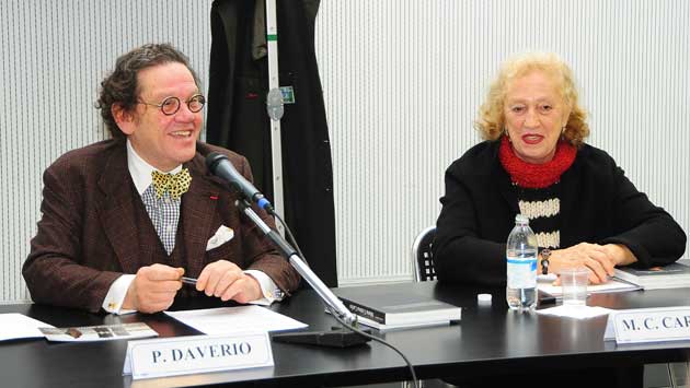 Maria Cristina Carlini con Philippe Daverio il 16 dicembre durante la conferenza in Triennale(foto ©Mimmo Capurso) |