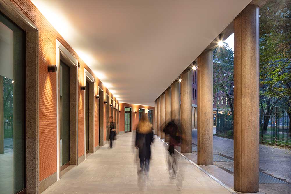 All’intervento, promosso da AXA IM Alts, il merito di contribuire in maniera significativa alla rigenerazione della zona: malgrado la bellezza infatti, il Parco delle Basiliche negli anni scorsi era diventato un’area di degrado nel cuore della città. Le recinzioni installate dalle precedenti Amministrazioni per arginare il problema hanno inciso sulla qualità dello spazio pubblico senza per questo risolvere la precaria frequentazione del porticato dell’edificio che il progetto recupera e trasforma in una food court, facendo vivere l’edificio e l’intorno per l’intero arco della giornata.