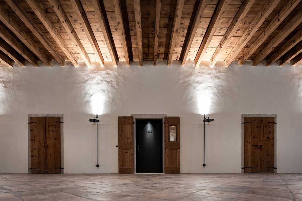 «La grandiosità e il rigore delle architetture, i lunghi corridoi, i soffitti a volta, tutto concorre a dare a questi spazi un carattere fuori dal tempo» spiega Francesco Padovan, architetto di noa* che ha sviluppato il progetto architettonico.
