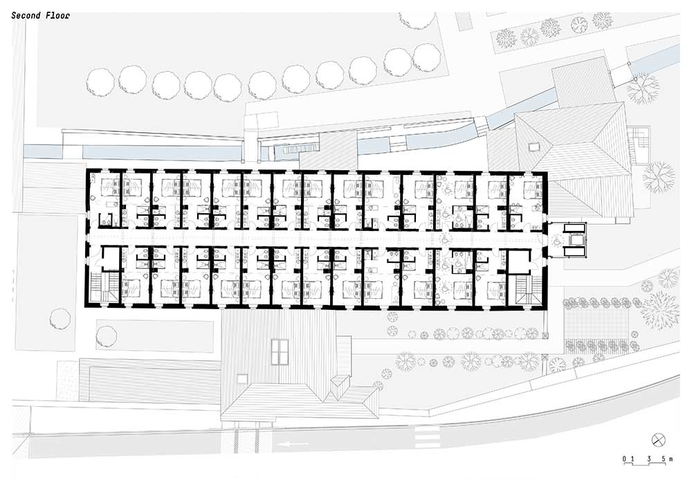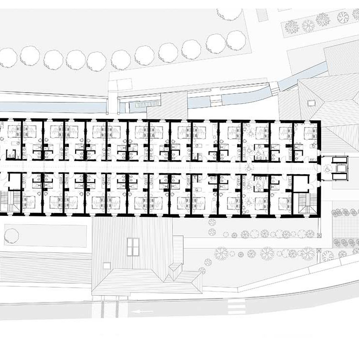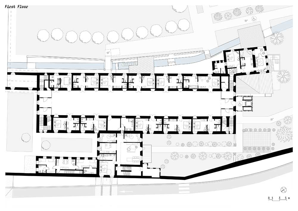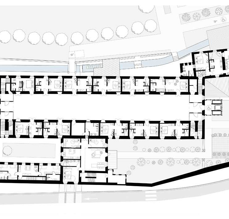 Il progetto di noa* network of architecture, che ha riguardato l’ala Sud dell’edificio – la parte restante ospita tuttora una chiesa e un ritiro di clausura – si è svolto a partire dal 2020 in collaborazione con la Soprintendenza per i Beni Culturali di Trento ai cui vincoli il complesso è sottoposto.