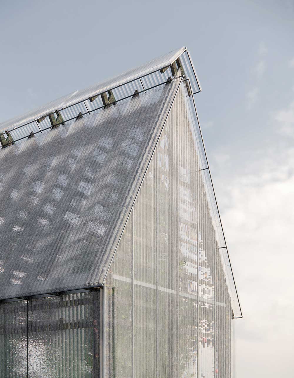 Un’idea prevedeva la trasformazione della tipologia in serre per promuovere l’autosufficienza alimentare tutto l’anno – sostituendo il rivestimento in scandole di cedro con pannelli in policarbonato e utilizzando le aperture esistenti sul colmo del tetto per regolare l’umidità.