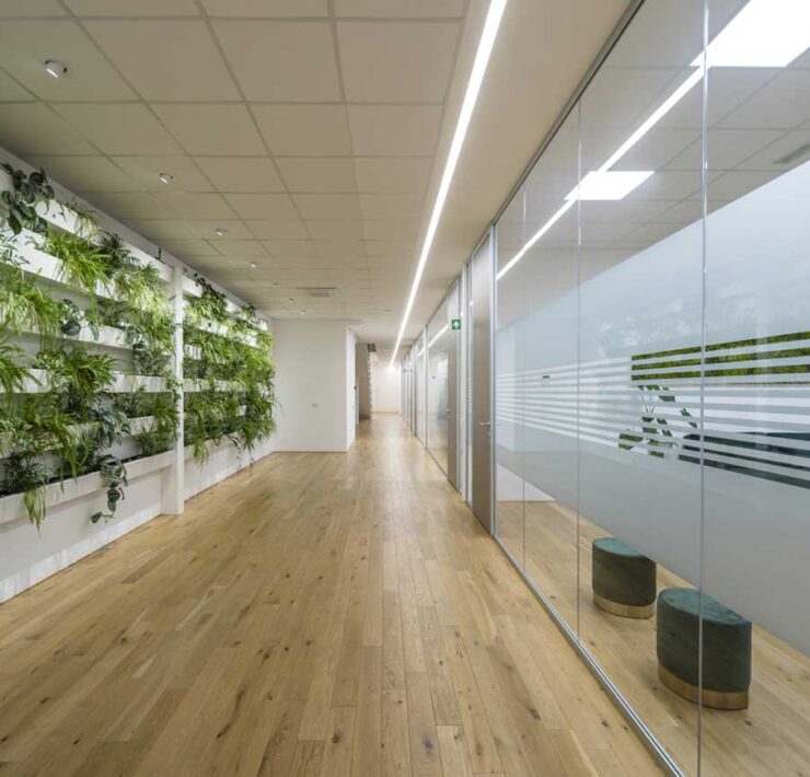 Tutti i modelli utilizzano legni certificati FSC e sono rivestiti in similpelle, con dettagli in ottone per la numerazione dei posti. Completano l’allestimento quattro moduli dedicati alle persone con disabilità e una pedana fissa con parti piane e in rampa, formata da una struttura metallica e piani di calpestio in pannelli di compensato con finitura in legno prefinito di rovere.