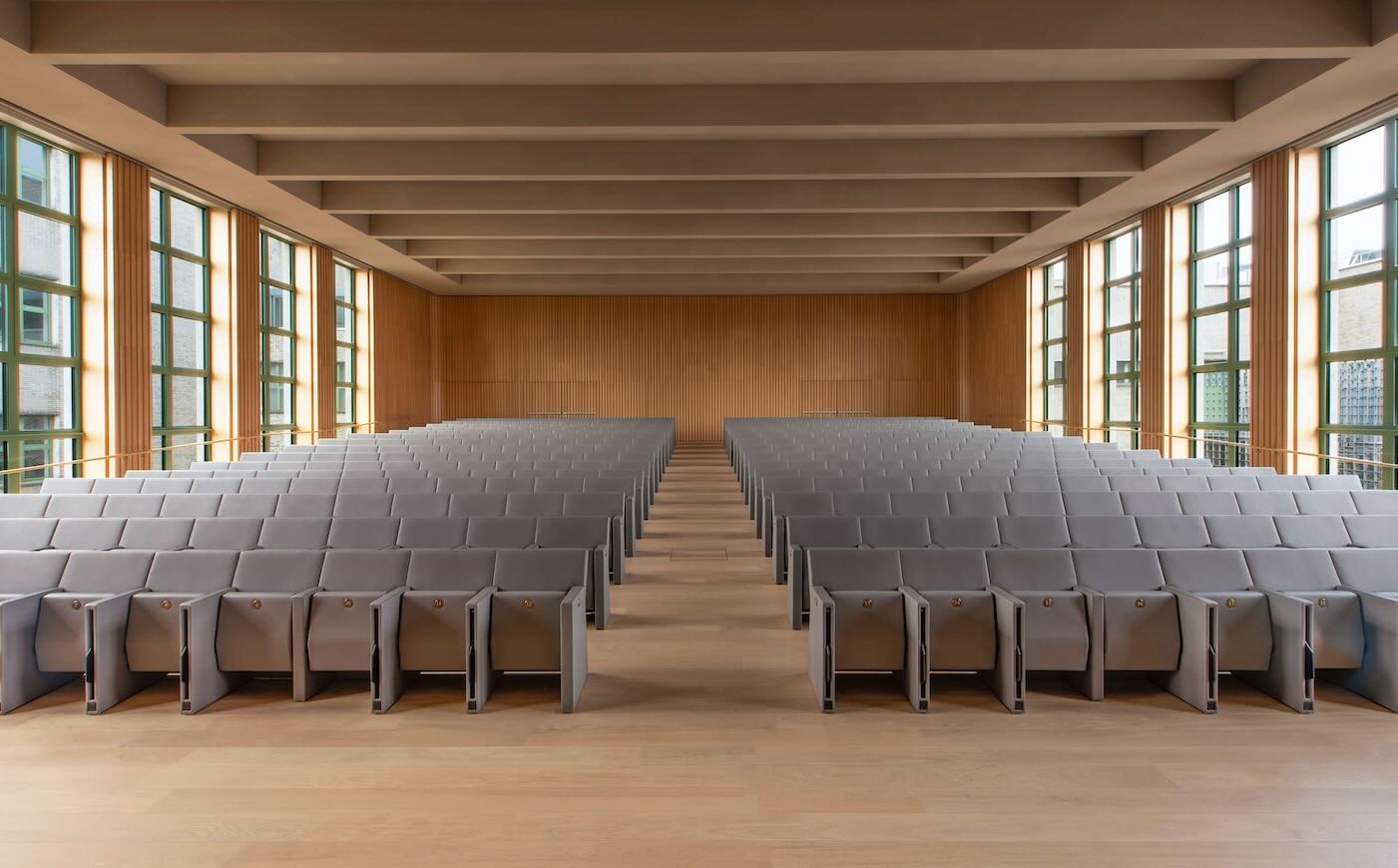 A curare il restyling è lo studio milanese Avenue Architects, che ha reinterpretato l’aula secondo i valori originari del razionalismo: linee essenziali, rigore compositivo e attenzione al dettaglio. Il progetto ha raggiunto livelli elevati di performance acustica e tecnologica, restituendo uno spazio al contempo contemporaneo e fedele allo spirito architettonico iniziale.