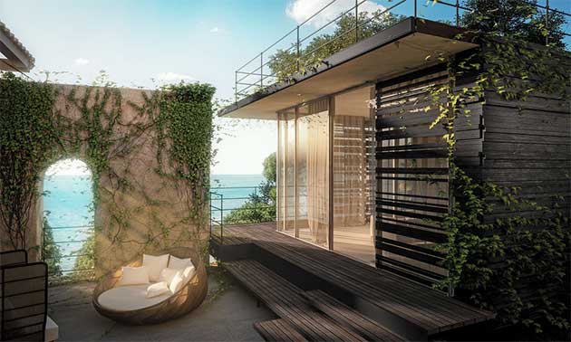 Segue il progetto di Punta Murena, lo spettacolare promontorio tra Albenga e Alassio dove è in corso la ristrutturazione della Novecentesca Villa Brunati e del suo parco, ricco di essenze secolari, che si dispiega tra l’Aurelia e il mare. Qui sono in costruzione dieci micro-architetture residenziali che riservano un rapporto esclusivo e intimo con la natura estrema del luogo. Sono costruite a secco, riciclabili, reversibili e rivestite in doghe di legno di larice bruciato.