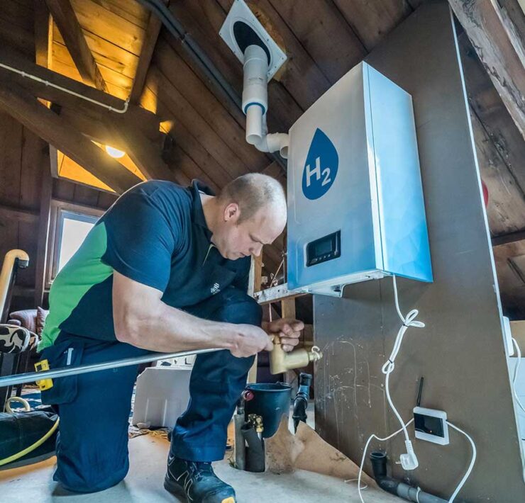 Questa rivoluzionaria caldaia utilizza idrogeno puro, che non rilascia alcuna CO e CO2, lavora con la stessa efficienza termica delle caldaie a condensazione a gas naturale ed è stata progettata per il riscaldamento e la produzione di acqua calda sanitaria.
