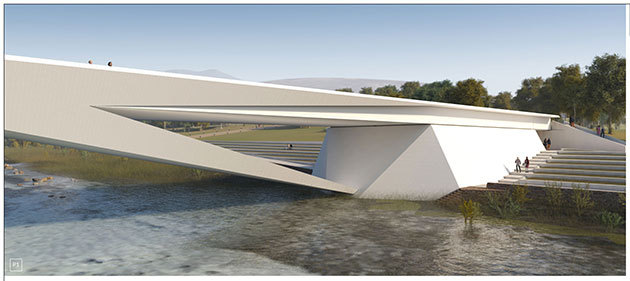 Del progetto di Fhecor e Campo Baeza è stata particolarmente apprezzata la capacità di fare sintesi tra soluzione strutturale, forma architettonica e paesaggio e anche la scelta di attraversare il fiume senza elementi in alveo, con una soluzione in grado di garantire la tenuta idraulica del corso d’acqua.