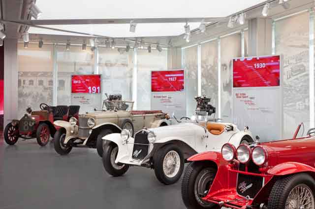 Il progetto espositivo è studiato per valorizzare una selezione di 70 auto della collezione storica ed è ampiamente integrato da sistemi multimediali, interattivi e immersivi. A ogni piano del museo è associato un valore simbolo del brand e una differente declinazione del design. I diversi livelli sono connessi da un grande vuoto centrale che ospita l’installazione sospesa DNA Alfa Romeo formata da parole e segni luminosi animati da un movimento elicoidale discendente.