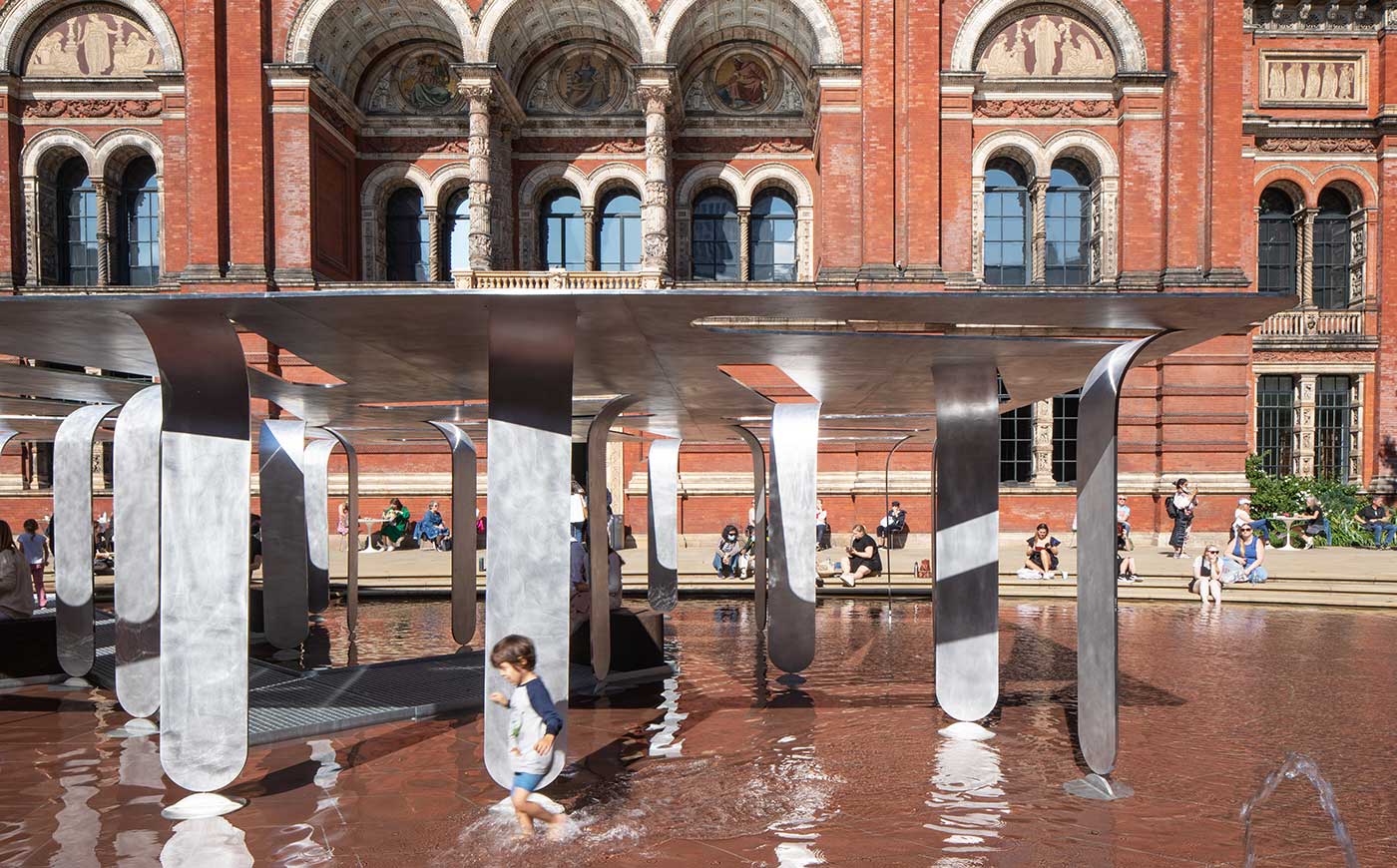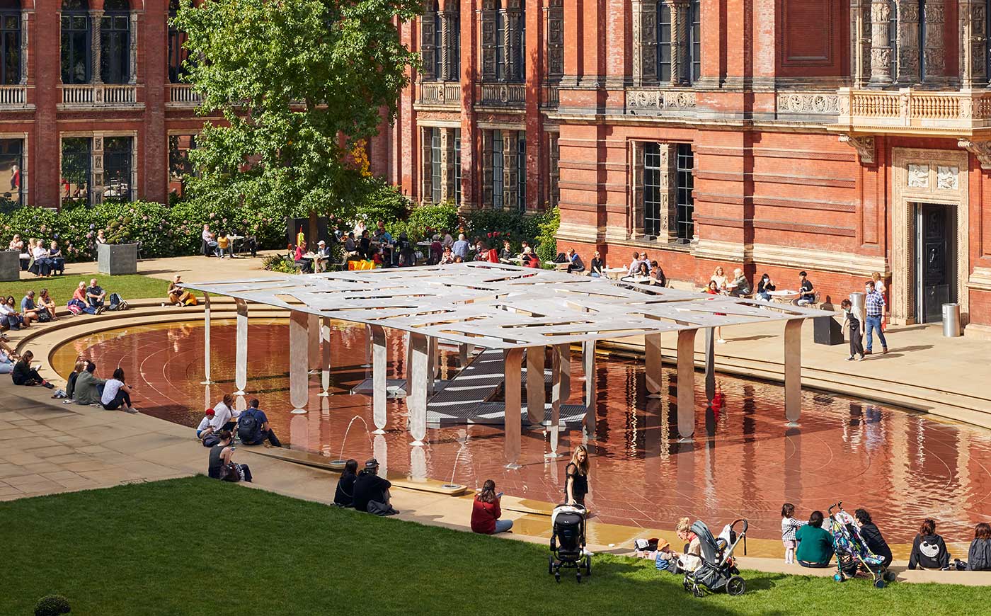 Dal 18 al 26 settembre il padiglione è stato installato al centro dell'acqua nel The John Madejski Garden del V&A (ph. ©Ed Reeve).