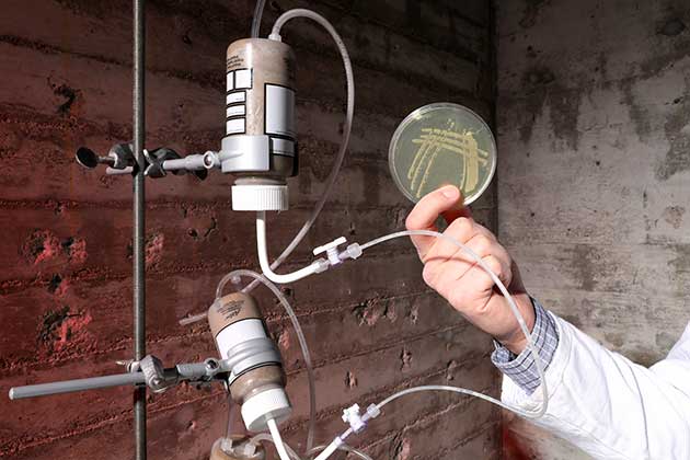 Il laboratorio di meccanica dei suoli dell’Ecole Polytecnique di Losanna (Epfl) ha sviluppato una tecnica per il rinforzo dei suoli basata sull’uso di batteri e urea: una serie di reazioni chimiche porta alla rapida formazione di cristalli di calcite che legano le particelle del terreno consolidando il suolo.