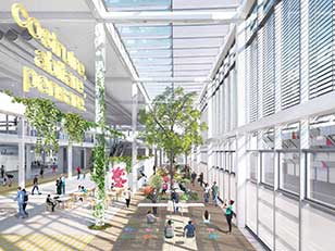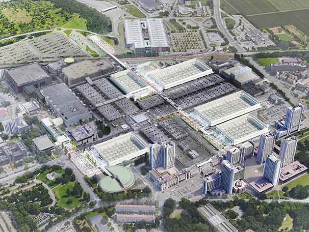 Render con vista dall´alto del quartiere fieristico di Bologna (render Di Gregorio Associati Architetti)