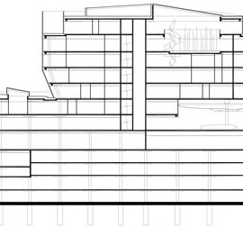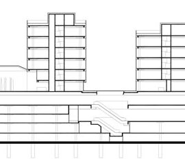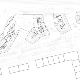 Il nuovo edificio vuole essere una porta di accesso a servizi e infrastrutture e una piazza di incontro con ristoranti, caffè e negozi. Sulla sommità del podio, infatti, i quattro complessi emergenti a forma di diamante sono completati da altrettante zone aperte di transito e sosta, un parco verde ripiantumato, due percorsi con scale e uno senza barriere architettoniche.