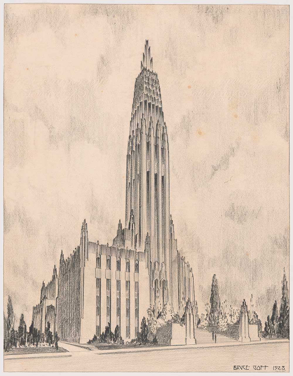 Bruce Goff, prospettiva della chiesa episcopale metodista di Boston Avenue a Tulsa, Oklahoma.